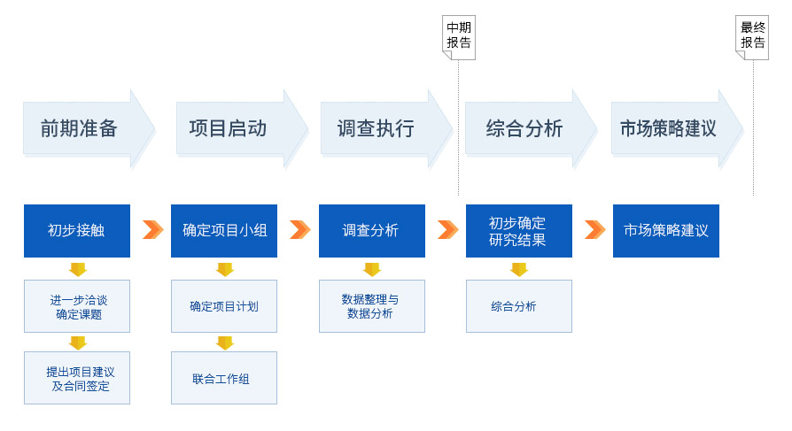 市場調(diào)查是由一系列收集和分析市場數(shù)據(jù)的步驟組成。某一步驟作出的決定可能影響其他后續(xù)步驟,某一步驟所做的任何修改往往意味著其他步驟也可能需要修改。市場調(diào)查的步驟① 一般按如下程序進行:①確定問題與假設;②確定所需資料;③確定收集資料的方式;④抽樣設計;⑤數(shù)據(jù)收集;⑥數(shù)據(jù)分析;⑦調(diào)查報告。